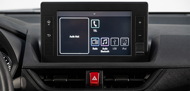 Màn hình giải trí trung tâm cảm ứng lên đến 8 inch kết nối điện thoại thông minh cùng hệ thống 4 loa hiện đại ứng dụng công nghệ trợ sáng giúp thao tác dễ dàng khi di chuyển trong buổi tối.