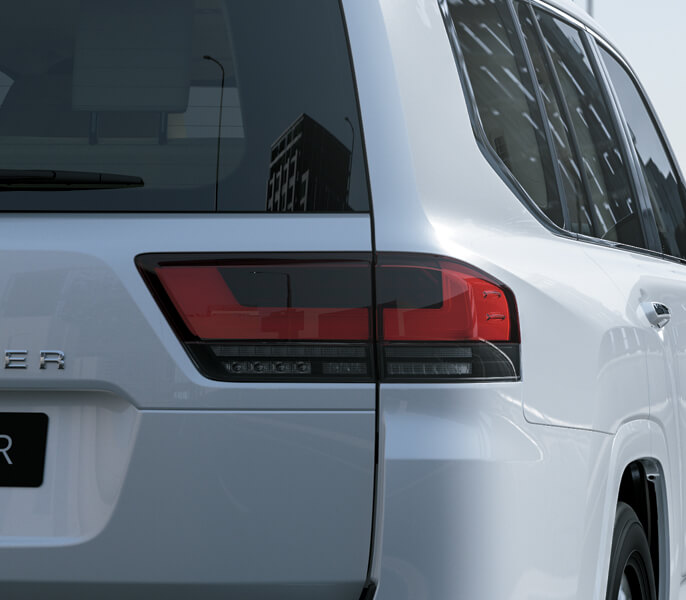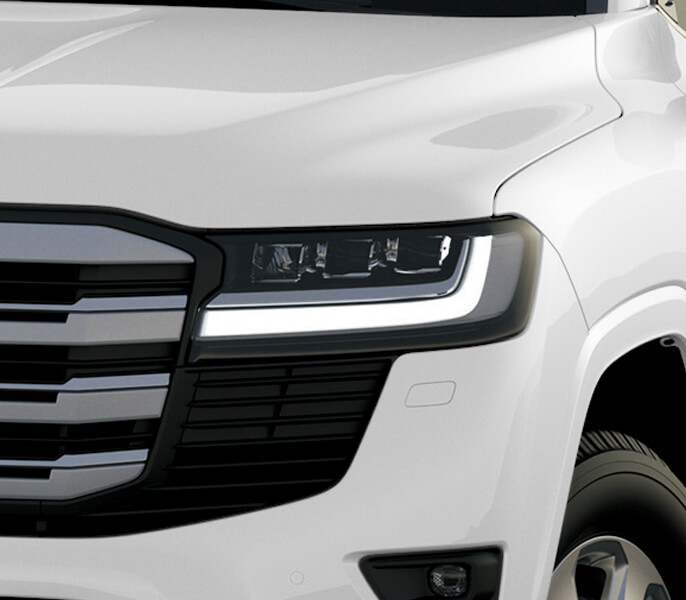 Cụm đèn LED kết nối với lưới tản nhiệt theo đường thẳng thể hiện đặc trưng thiết kế của LAND CRUISER- uy lực mạnh mẽ nhưng không kém phần sang trọng.